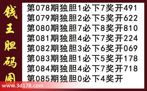 3d胆码图库钱王胆码图第2015085期:3d胆码图库钱王胆码图第2015085期详解:第078期独胆1必下7奖开491第079期独胆2必下5奖开622第080期独胆7必下8奖开810第081期独胆4必下7奖开224第082期独胆3必下6奖开069第083期独胆1必下5奖开178第084期独胆4必下7奖开718第085期独胆0必下4奖开钱王胆码图由3D之家3D图库频道原创,仅供彩民参考,温馨提供。