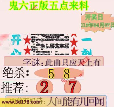 3d第2015090期鬼六五点来料: