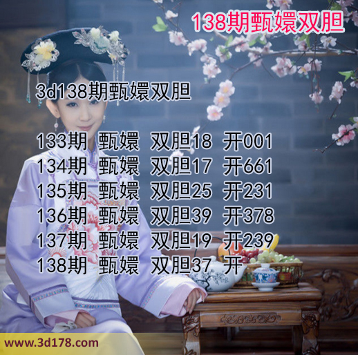 甄嬛双胆图3d第15138期胆码推荐: 甄嬛双胆图3d第15138期胆码推荐详解:133期 甄嬛 双胆18 开001134期 甄嬛 双胆17 开661135期 甄嬛 双胆25 开231136期 甄嬛 双胆39 开378137期 甄嬛 双胆19 开239138期 甄嬛 双胆37 开甄嬛双胆图由3D之家3D图库频道原创,仅供彩民参考,温馨提供。