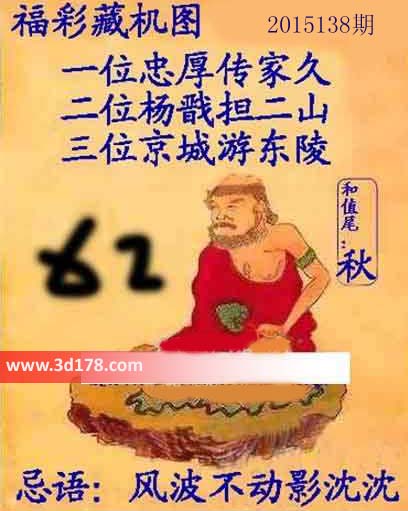 3d第2015138期正版藏机图详解:一位:忠厚传家久二位:杨戬担二山三位:京城游东陵和尾:秋忌语:风波不动影沈沈3d正版藏机图由3D之家3D图库频道原创,仅供彩民参考,温馨提供。