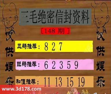 3d第2015148期三毛绝密信封资料图详解:三码推荐:827旺码推荐:62359和值推荐:11 13 15 19三毛图库由3D之家3D图库频道原创,仅供彩民参考,温馨提供。