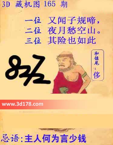 3d第2015165期晚间藏机图:3d第2015165期晚间藏机图详解:一位:又闻子规啼二位:夜月愁空山三位:其险也如此和尾:侈忌语:主人何为言少钱以上是3d之家为您提供的晚间版藏机图,正版藏机图请于次日上午进行关注。3d藏机图由3D之家3D图库频道原创,仅供彩民参考,温馨提供。