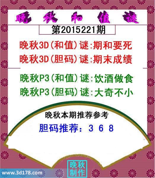 晚秋3D(和值)谜:期和要死