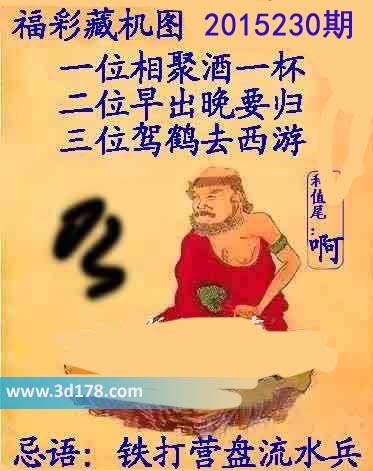 3d第2015230正版藏机图详解:一位:相聚酒一杯二位:早出晚要归三位:驾鹤去西游和尾:啊忌语:铁打营盘流水兵