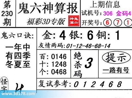 3d之家3d鬼六神算报第2015230期鬼六口诀推荐: