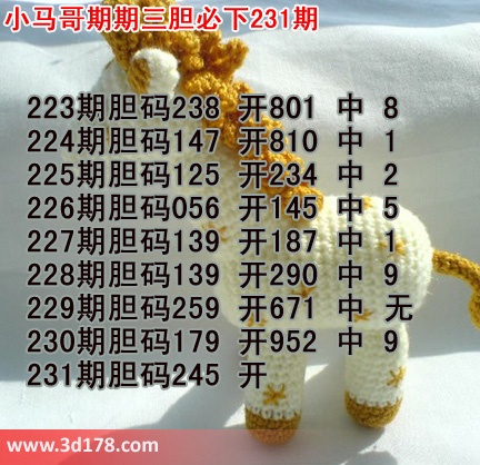 3d第231期小马哥三胆预测如下: