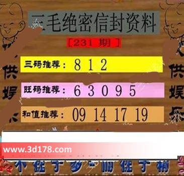 和值推荐:09 14 17 19三毛图库由3D之家3D图库频道原创,仅供彩民参考,温馨提供。