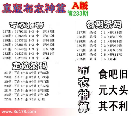 3d之家布衣图库之布衣神算图第2015233期详解: