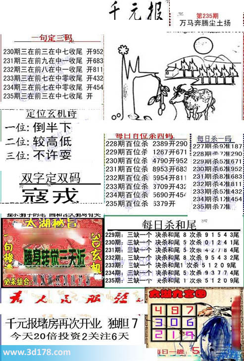 福彩3d布衣图库布衣千元报第2015235期定位玄机诗: