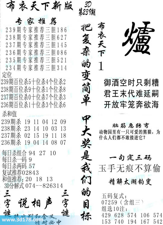 第2015239期福彩3d布衣天下新版: