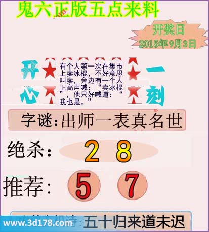福彩3d鬼六图库第15239期鬼六正版五点来料图: