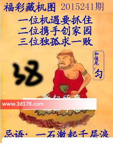 福彩3d第241期正版藏机图详情如下:一位:机遇要抓住二位:携手创家园三位:独孤求一败和尾:匀忌语:一石激起千层浪3d正版藏机图由3D之家3D图库频道原创,仅供彩民参考,温馨提供。