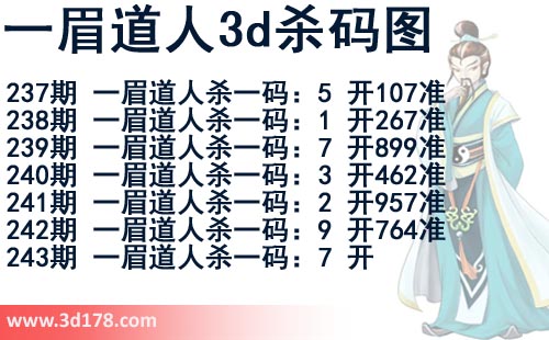 该一眉道人3d杀码图由3D之家3D图库频道原创,仅供彩民参考,温馨提供。