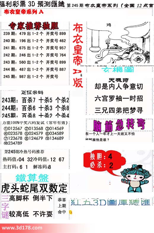 福彩3d第2015245期布衣天皇帝A版布衣专家独家推荐: