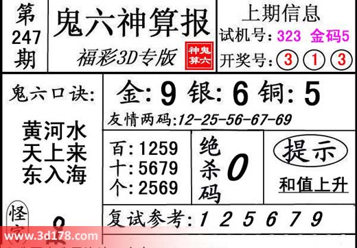 3d鬼六神算报第247期为您推荐最新的胆码: