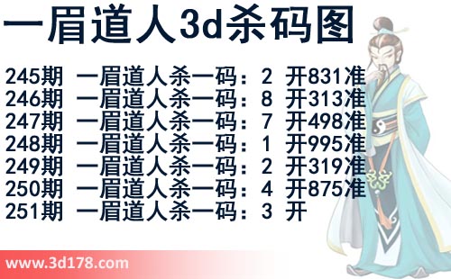 该一眉道人3d杀码图由3D之家3D图库频道原创,仅供彩民参考,温馨提供。