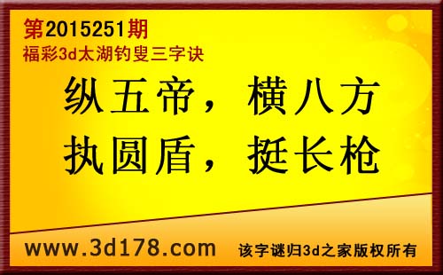 第2015251期3d太湖图库解太湖钓叟三字诀: