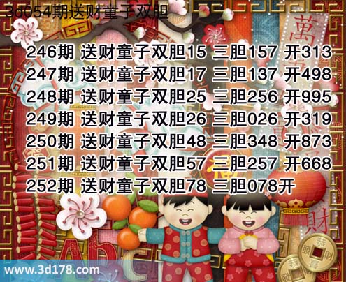 下面我们一起来回顾一下3d之家胆码图送财童子双胆近4期推荐详情:
