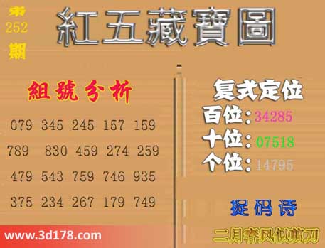 3d之家3d红五藏宝图第2015252期为您推荐复式定位、捉码诗以及组号分析: