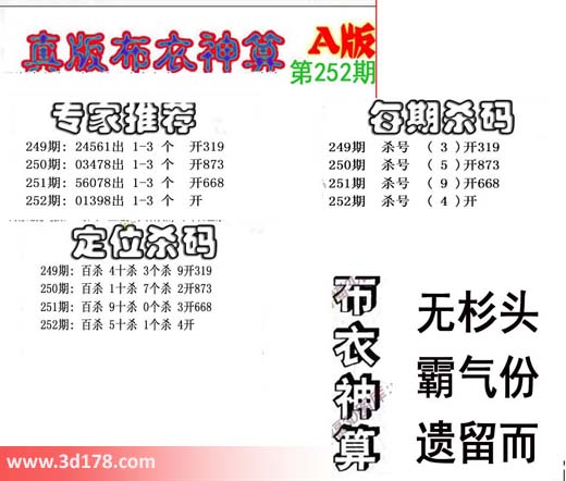3d布衣神算第252期定位杀码: