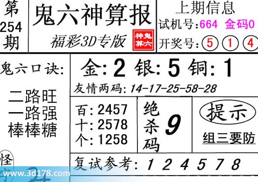 3d鬼六神算报第254期为您推荐鬼六口诀