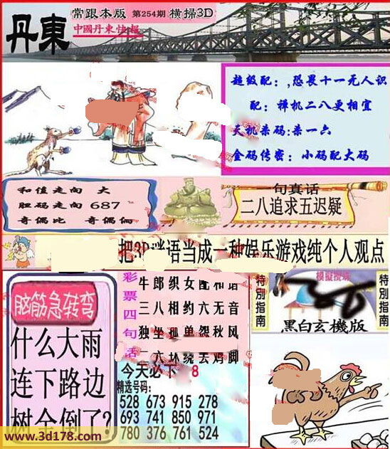 3d之家第2015254期丹东快报图详解:超级配:恐畏十一无人识配:禅机二八更相宜天机杀码:杀一六和值走向:大胆码走向:687奇偶比:奇偶偶金码传密:小码配大码精选号码:528 673 915 278 693 741 850 971 780 376 761 524脑筋急转弯:什么大雨连下路边树全倒了?该丹东图库由3D之家3D图库频道原创,仅供彩民参考,温馨提供。