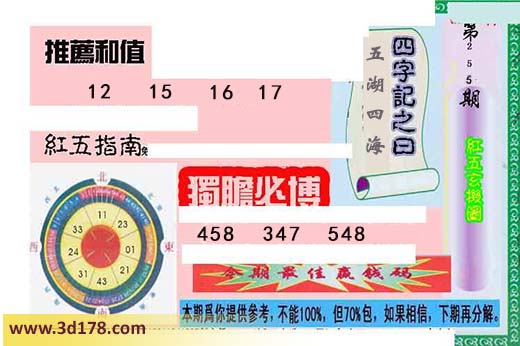3d之家红五图库第15255期福彩3d红五图为您推荐:3d第2015255期红五玄机图详细内容:推荐和值:12 15 16 17独胆必博:458 347 548四字记之曰:五湖四海该红五图库由福彩3D之家3D图库频道原创,仅供彩民参考,温馨提供。