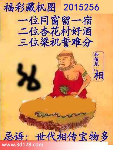福彩3d第256期正版藏机图详情如下:一位:同窗留一宿二位:杏花村好酒三位:梁祝誓难分和尾:相忌语:世代相传宝物多