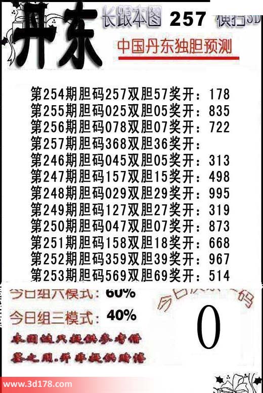 福彩3d第2015257期丹东解析:
