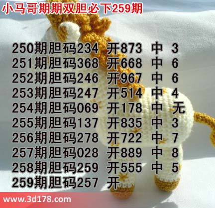 3d第259期小马哥三胆预测如下: