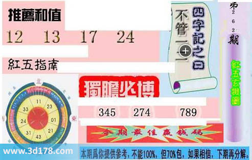 推荐和值:12 13 17 24独胆必博:345 274 789四字记之曰:不管一二该红五图库由福彩3D之家3D图库频道原创,仅供彩民参考,温馨提供。