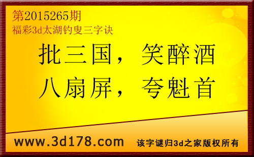 第2015265期3d太湖图库解太湖钓叟三字诀: