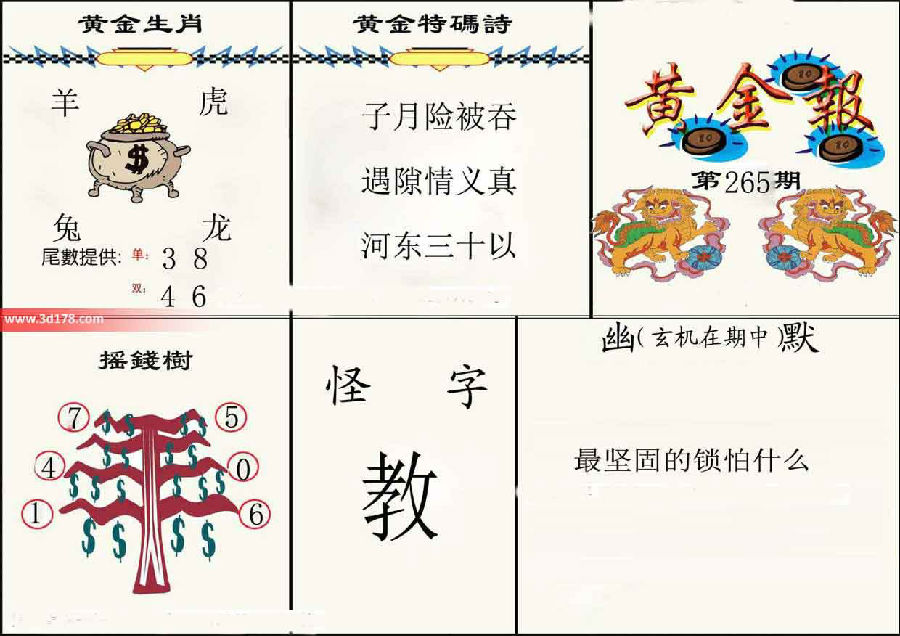 福彩3d第2015265期3d黄金报为您推荐黄金特码: