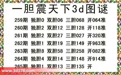 一胆震天下三胆图库由3D之家3D图库频道原创,仅供彩民参考,温馨提供。