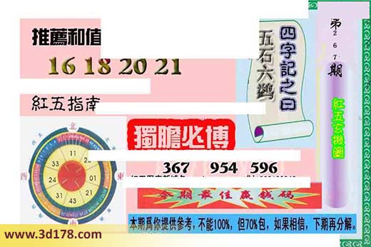 3d之家红五图库第15267期福彩3d红五图为您推荐:3d第2015267期红五玄机图详细内容:推荐和值:16 18 20 21独胆必博:367 954 596四字记之曰:五石六鹢该红五图库由福彩3D之家3D图库频道原创,仅供彩民参考,温馨提供。