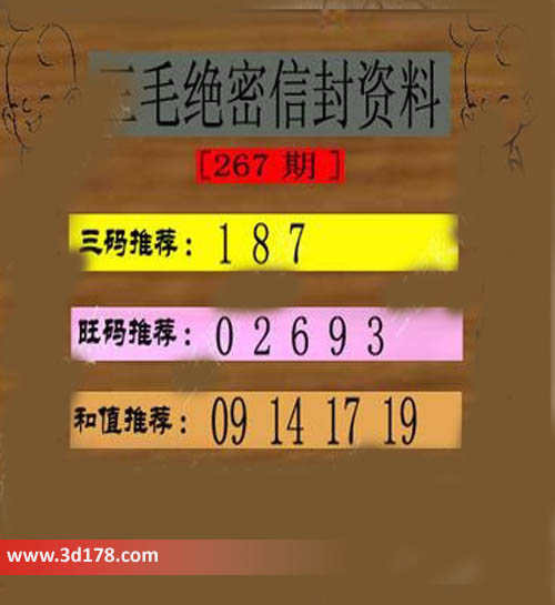 福彩3d第267期三毛绝密信封资料图详解: