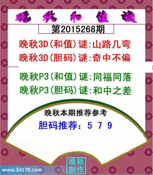 第15268期福彩3d红五图为您推荐和值以及组选: