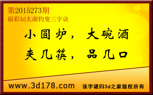 第2015273期3d太湖图库解太湖钓叟三字诀: