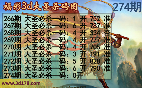 第274期3d大圣杀码图详情如下: