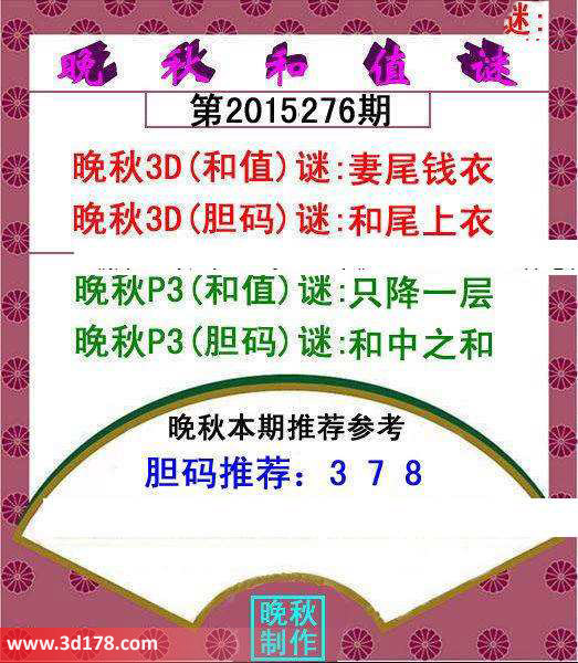 3d第2015276红五晚秋推荐详情:晚秋3D(和值)谜:妻尾钱衣晚秋3D(胆码)谜:和尾上衣晚秋P3(和值)谜:只降一层晚秋P3(胆码)谜:和中之和胆码推荐:378 该红五图库由3d之家3D图库频道原创,仅供彩民参考,温馨提供。