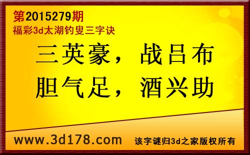 第2015279期3d太湖图库解太湖钓叟三字诀: