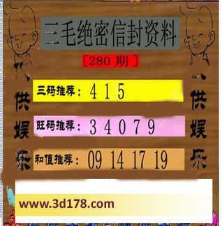 福彩3d第280期三毛绝密信封资料图详解: