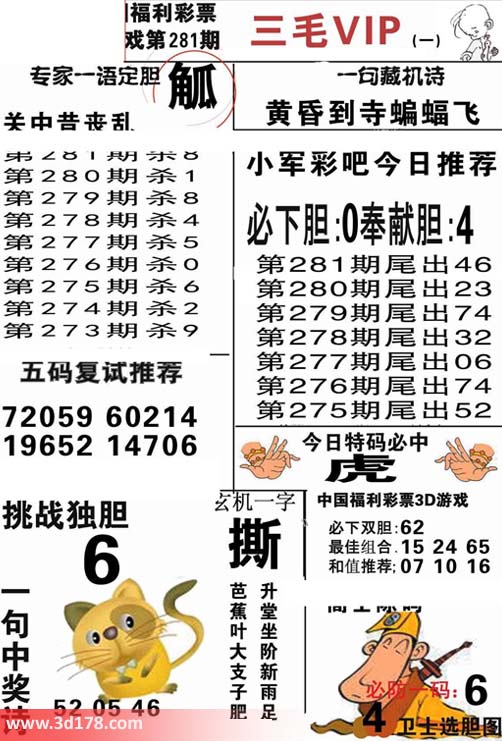 第2015281期3d三毛图库为您解读本期专家一语定胆: