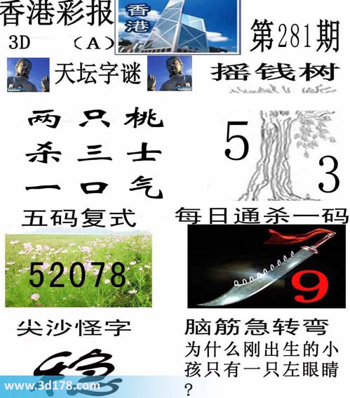 3d之家3d香港彩报第15281期摇钱树推荐两码53