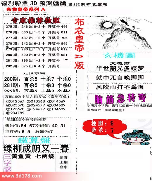 福彩3d第2015282期布衣天皇帝A版布衣专家独家推荐: