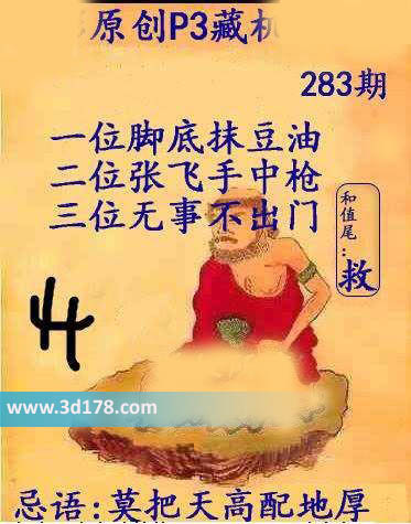 福彩3d第283期正版藏机图详情如下: