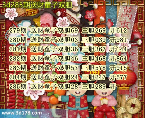 下面我们一起来回顾一下3d之家胆码图送财童子三胆近期推荐详情: