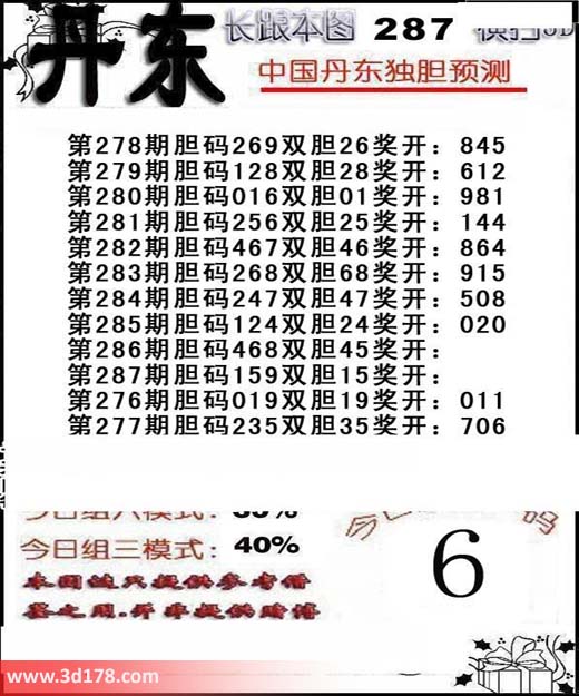 福彩3d第2015287期丹东解析: