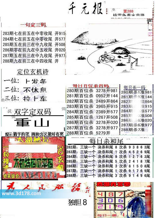 福彩3d第2015288期布衣千元报图详情分析如下: