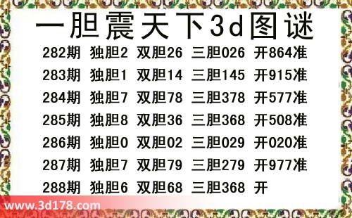 一胆震天下三胆图库由3D之家3D图库频道原创,仅供彩民参考,温馨提供。